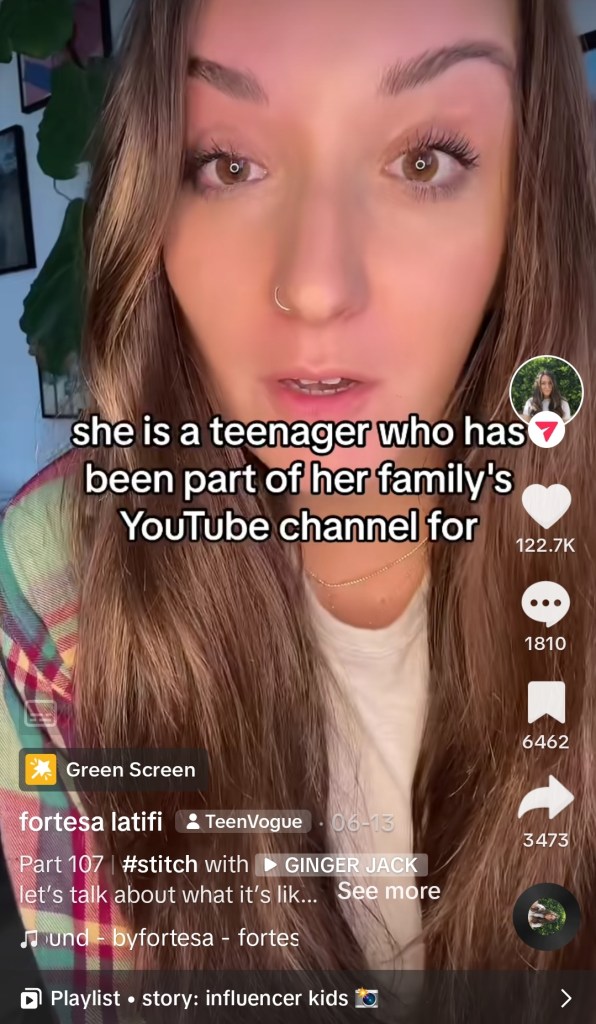 A screenshot of the TikTok video made by journalist, Fortesa Latifi, sharing about her interview with “Claire,” a former child influencer (from @byfortesa)